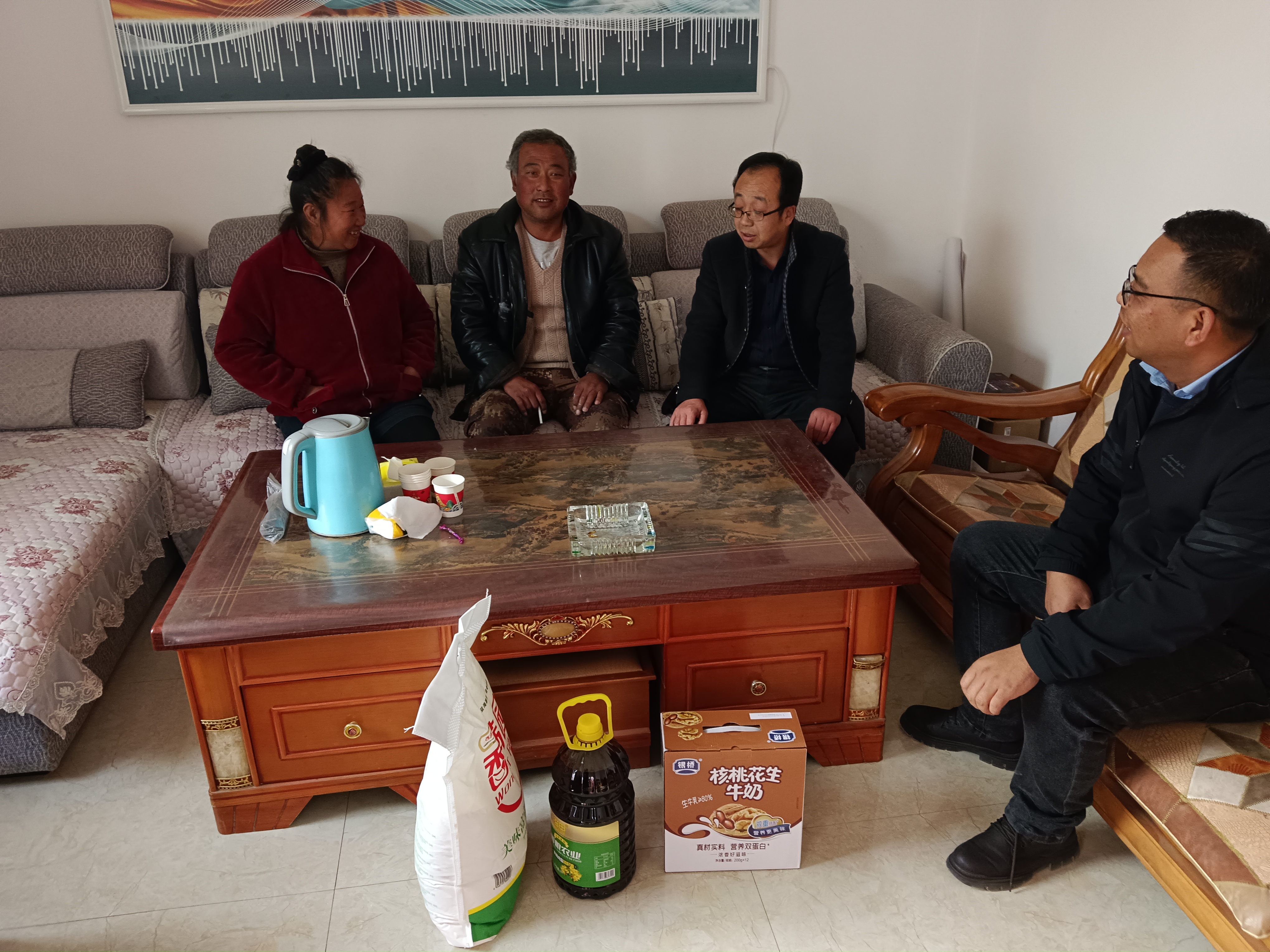 活動(dòng)結(jié)束后,我公司黨支部書(shū)記陳禮協(xié)同高崖鎮(zhèn)人大主席金赟、砂河村書(shū)記張發(fā)軍對(duì)5戶(hù)困難家庭進(jìn)行了上門(mén)慰問(wèn)。通過(guò)走訪慰問(wèn),積極了解困難群眾的實(shí)際生活狀況,并詢(xún)問(wèn)困難群眾的身體狀況,家庭收入等,幫助他們解決實(shí)際困難,鼓勵(lì)他們積極樂(lè)觀地面對(duì)生活,并為他們送去了慰問(wèn)品以及節(jié)日的祝福,進(jìn)一步體現(xiàn)出政府和企業(yè)對(duì)困難群眾的全方位關(guān)懷與照顧。